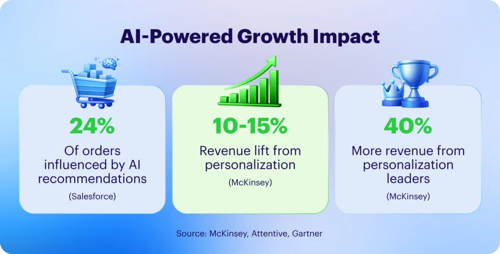 Together, these findings illustrate why hyper-personalization is no longer optional – it is becoming a defining advantage in digital commerce. Retailers adopting AI recommendation engines consistently see improvements in:
