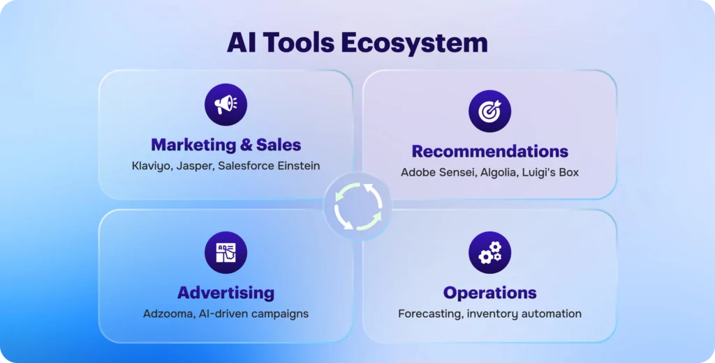 Similar AI eCommerce solutions with analytics platforms, CRMs, and eCommerce systems to bridge the gap between spend, behavior, and conversions. This enables advertising to self-optimize based on performance and long-term value rather than surface measurements.