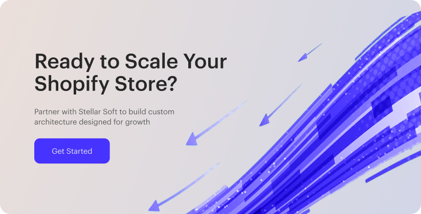 Are you prepared to grow your store using a Shopify solution that will last? Collaborate with Stellar Soft to create a unique architecture that is suited for expansion.