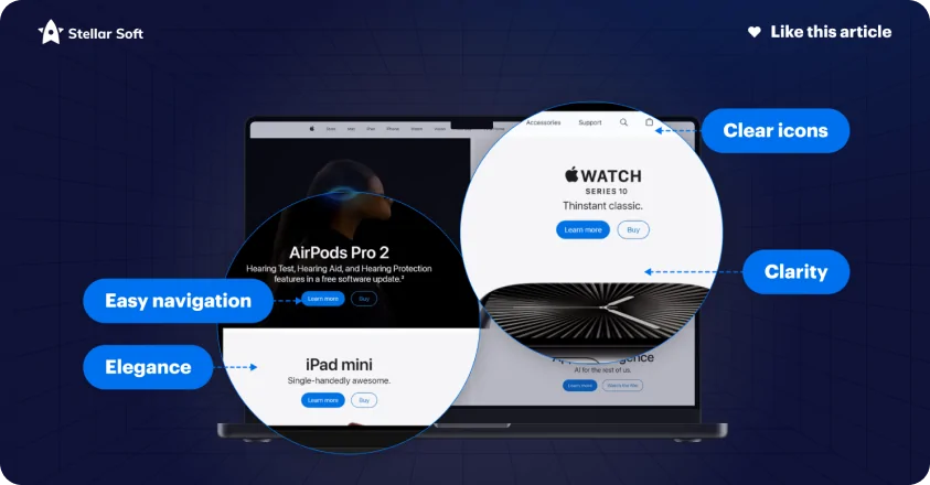 Known for its clean and elegant design, Apple’s navigation is a masterclass in directing users intuitively to its array of products and services without any distractions.
