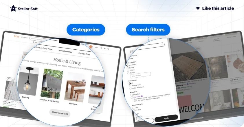 For a site packed with unique, personalized items, Etsy’s curated categories and search filters help users explore a massive range of products easily.